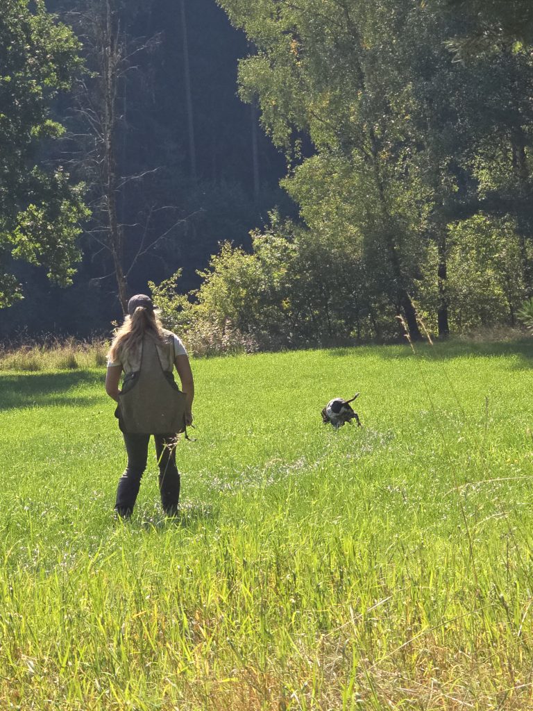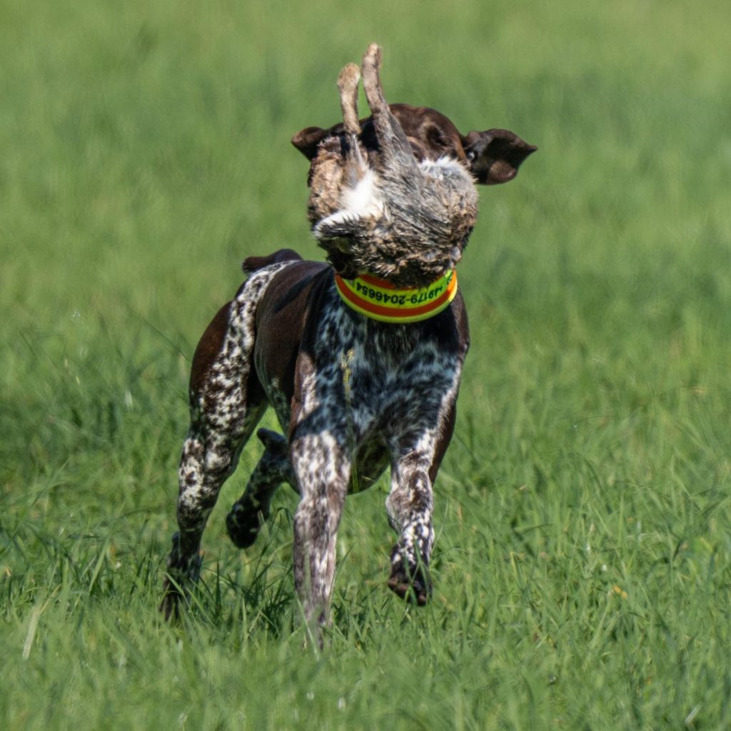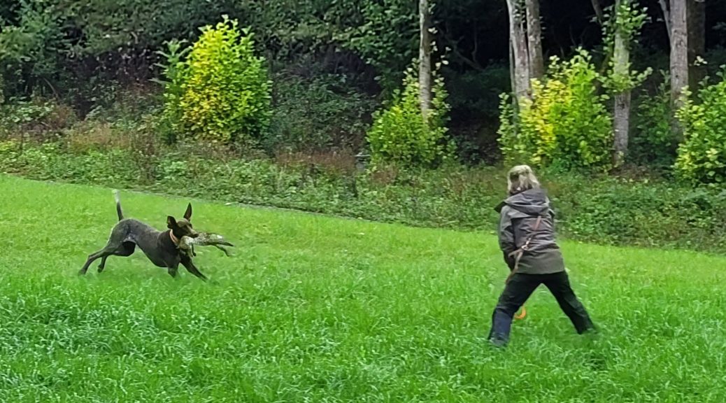 Aber das Tempo wurde ihr beim Wildkontakt zum Verhängnis, denn sie konnte zweimal Fasane nicht vorstehen, diese wurden sofort hochgemacht, strichen ab…..die Hündin hetze nach und konnte sie nach langem Verfolgen tatsächlich greifen und korrekt bringen.