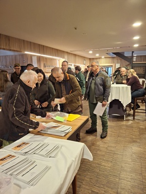 Ab 9.00 Uhr konnte der Griff in die Lostrommel gewagt werden. Hier losen sich die Führer in die einzelnen Prüfungsgruppen, erfahren, wer die Richter sein werden und in welche Reviere es am Folgetag gehen wird.