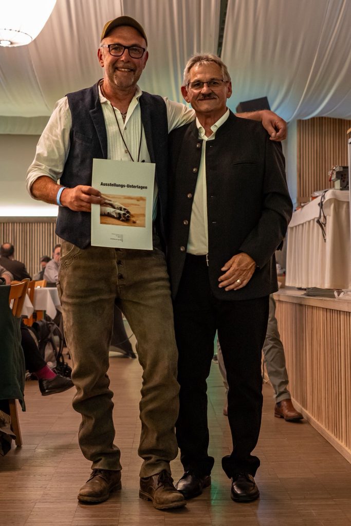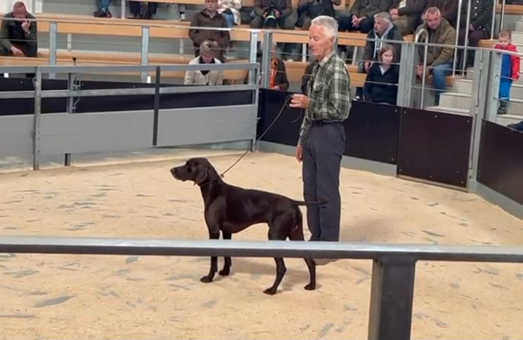 Dann wurde es spannend! Bei den Rüden (51) gab es im ganzen Feld nur 17 x den Formwert „Vorzüglich“. Zum V1 Rüden wurde „Unkas vom Grasnitzbründl“ gekürt! Der Führer Jochen Mühlböck ist Mitglied im DK-Franken und Unkas ist ein Sohn von „Knox KS von der Königsleite“.