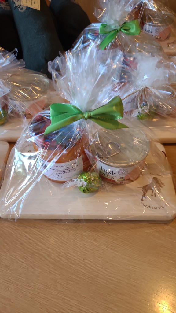 Für die Richter gab es eine „Marmeladensocke“ – Jagdsocken, die mit selbstgemachten Marmeladen gefüllt wurden.für die Führer ein Brotzeitbrettchen mit Leckereien….eine Erinnerung an die VGP 2025