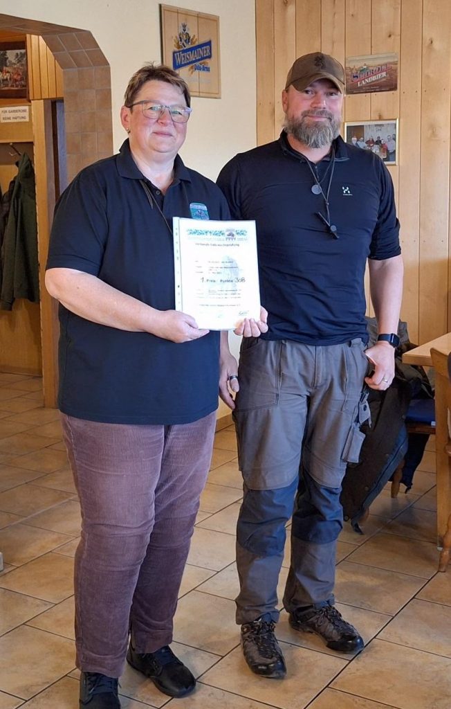 Josefine vom Hirschenacker und Führer Aaron Jobst. Die beiden lieferten eine absolut grandiose Schweißarbeit und anschließendes Bringselverweisen. Die Richter waren begeistert!